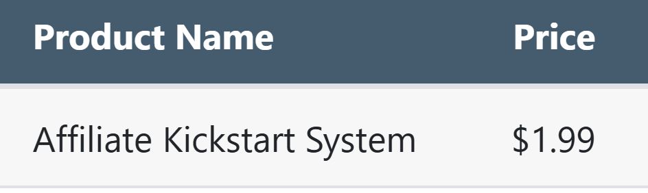 The “Affiliate Kickstart System” is being offered for a launch special of only $1.99. For the price of a cup of tea, you are getting a complete blueprint on how affiliate marketing works.